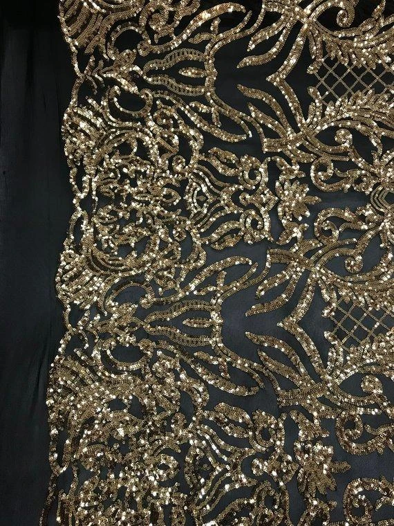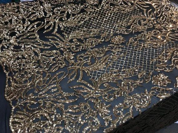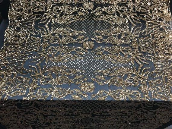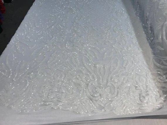 Design your desire dress with this beautiful NEW Design sequins 4 way stretch on A MESH lace that makes you attractive, and everyone appreciates your charm on your wedding day. This luxurious stretch sequins fabric is adorned by luxury sequins that add ultra-luster to the material.