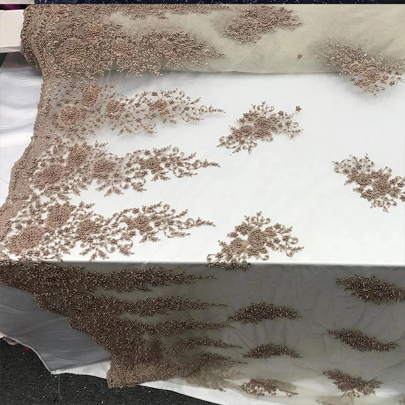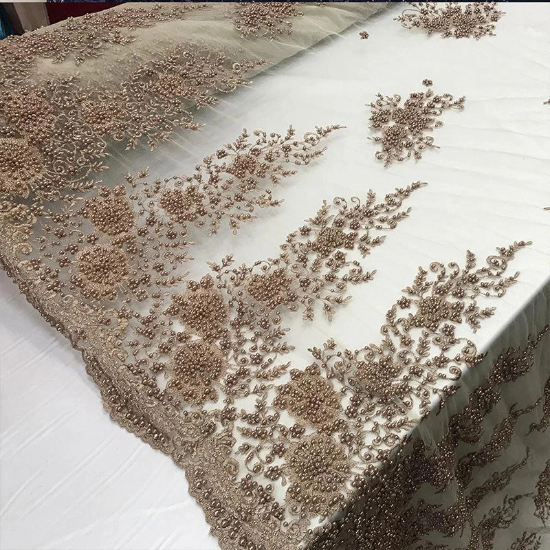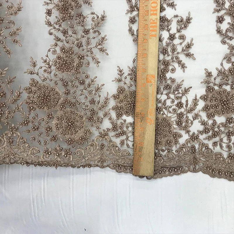 - Beaded mesh lace fabric, very soft hand feel, it is chic for a bridal wedding gown, comfortable for a summer dress.