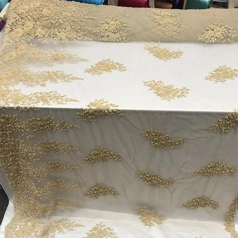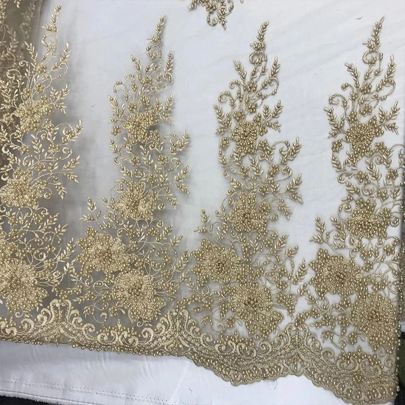 Read more for hot selling White Heavy Embroidery Bridal Design Beaded Mesh Lace Fabric.