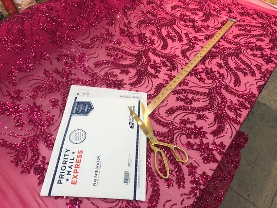 FAQs About “New Design Fuchsia Embroidery 4 Way Stretch Sequin Fabric”