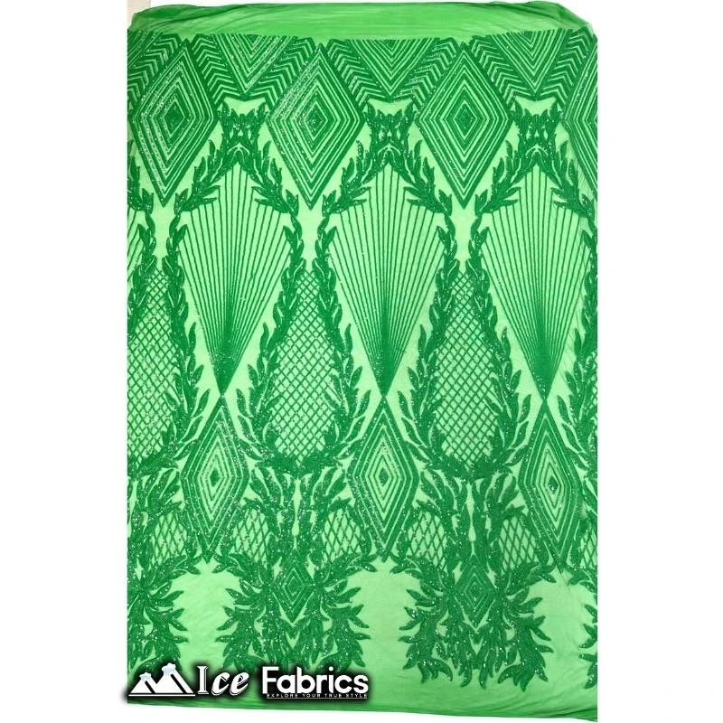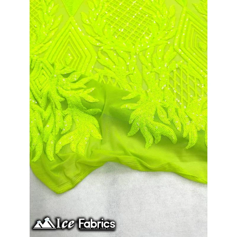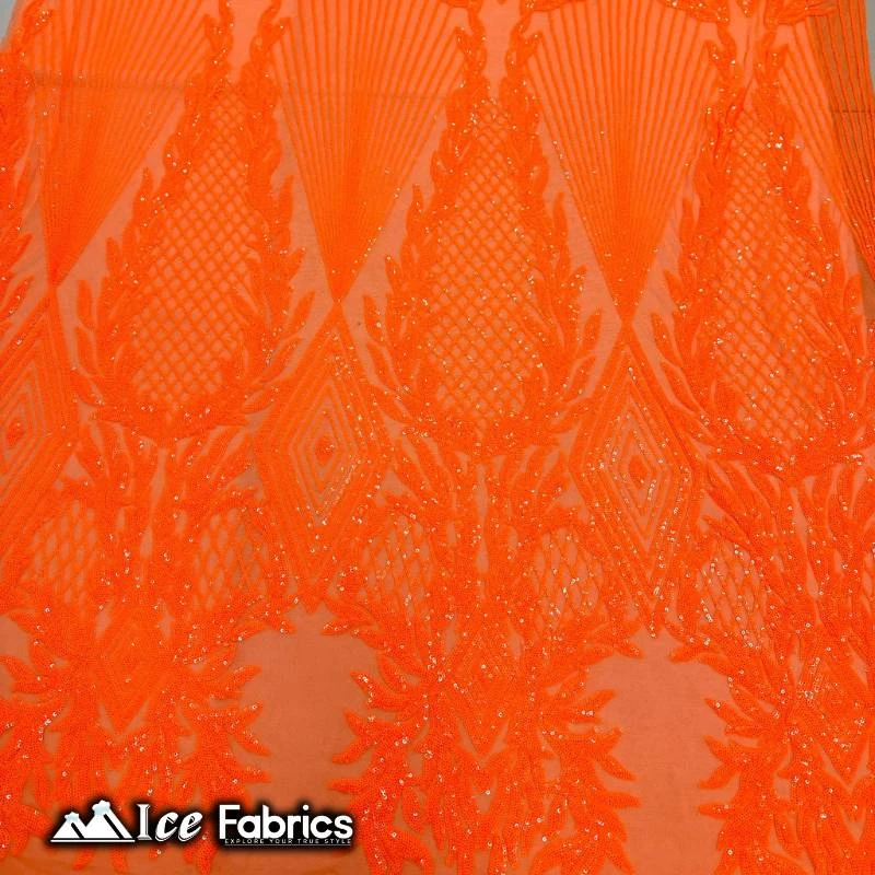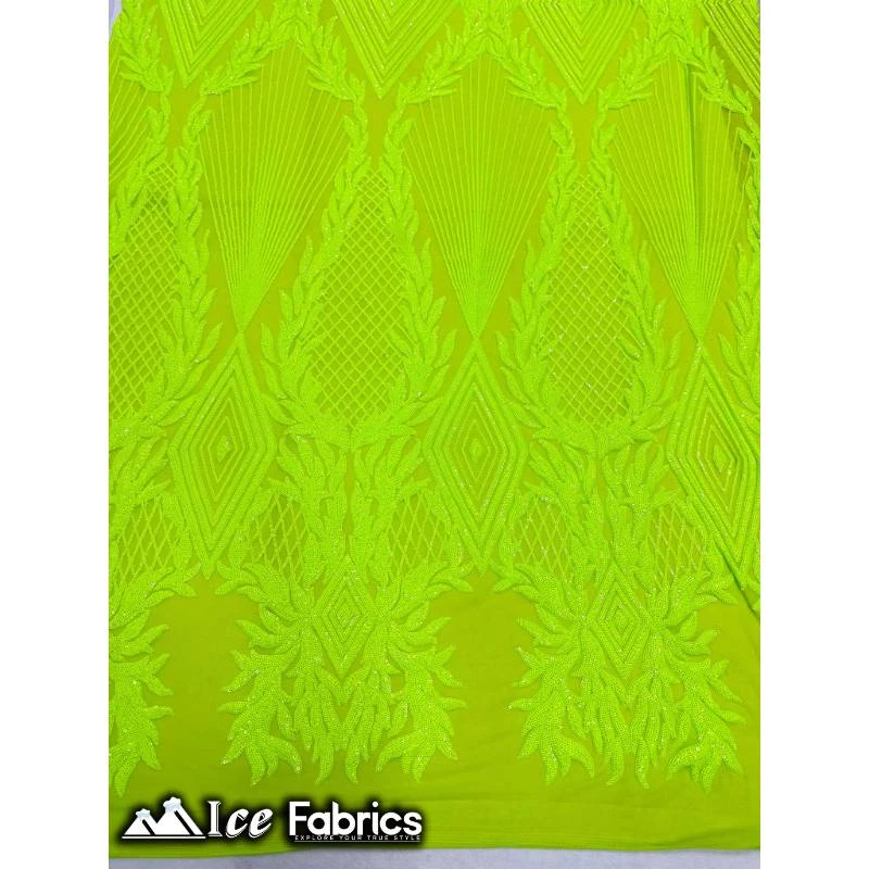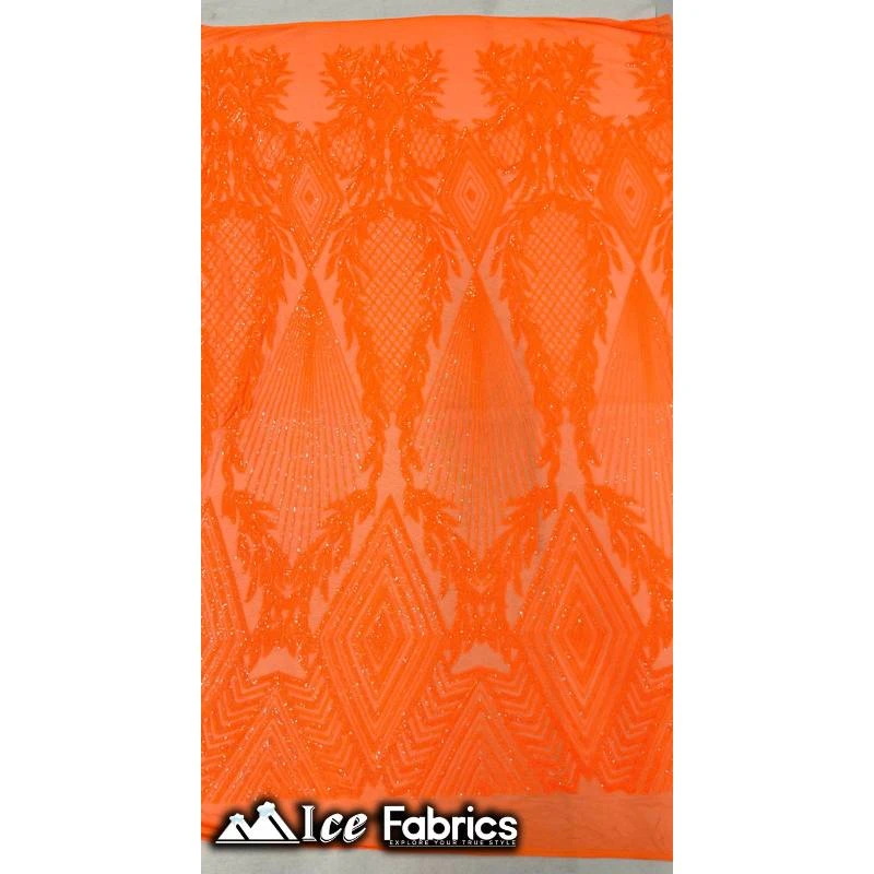 IceFabrics offers New Diamonds Design 4 Way Stretch Sequin Embroidered Fabric by the yard in unique size and variant colors.