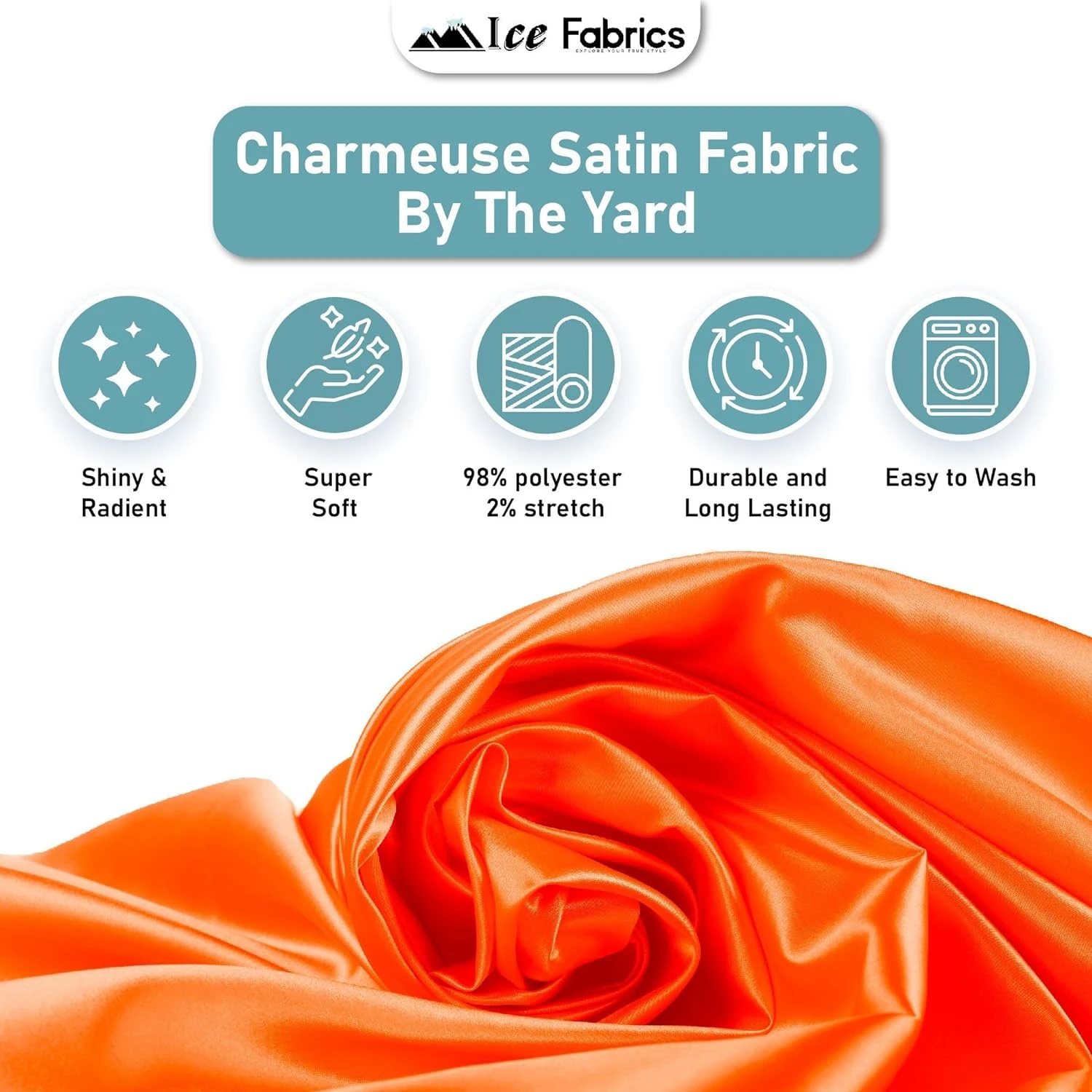 IceFabrics offers Shiny Charmeuse Stretch Satin Fabric by yard in unique color and unique size.