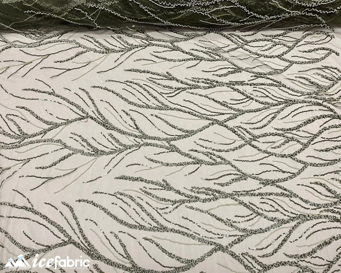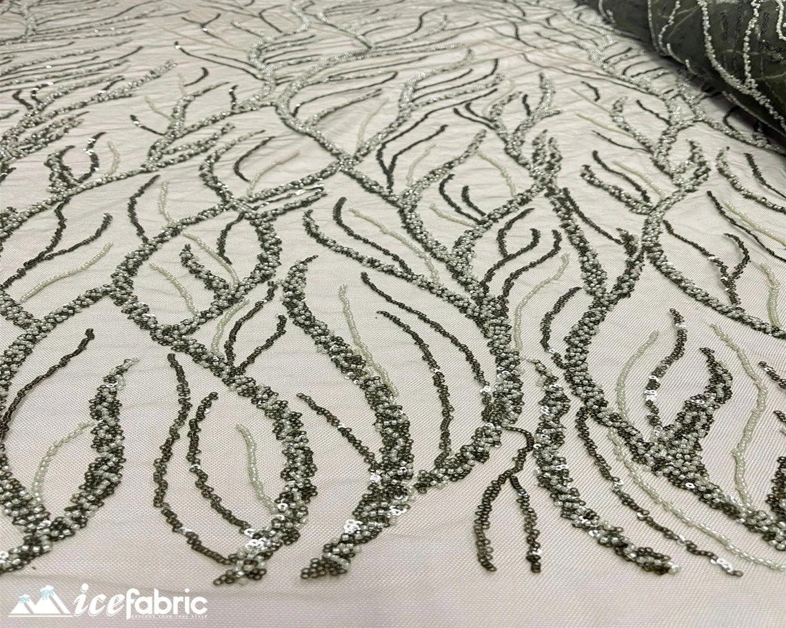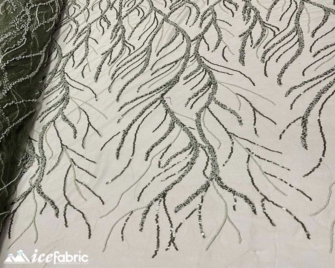 Olive Green Handmade Heavy Beaded Fabric By The Yard | 52’’ Wide | Handmade Sequin Beaded Embroidery Lace Fabric