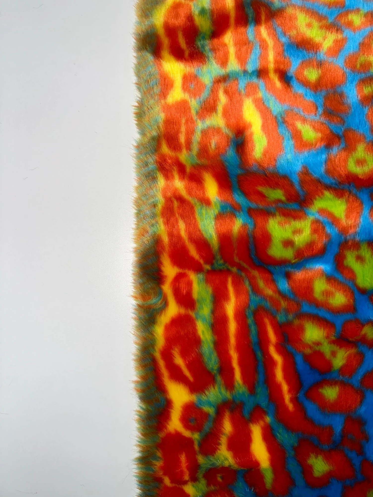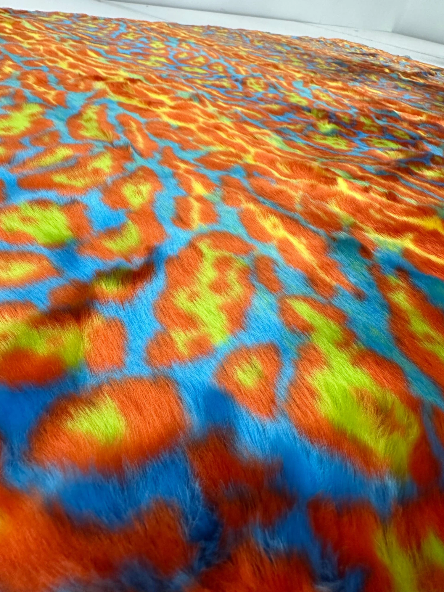 Orange & Yellow and Turquoise Leopard Print Short Pile Faux Fur Fabric