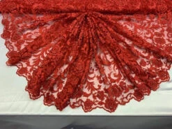 ITALIAN Heavy Embroidery Hand Beaded Mesh Lace Fabric Sold By The Yard