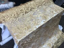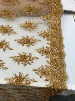 Gold Embroidered Bridal Wedding Designed Beaded Mesh Lace Fabric