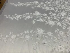 3D Embroidered French Beaded Mesh Lace Fabric