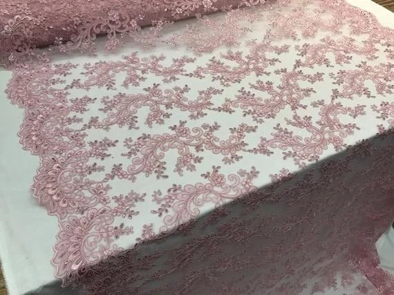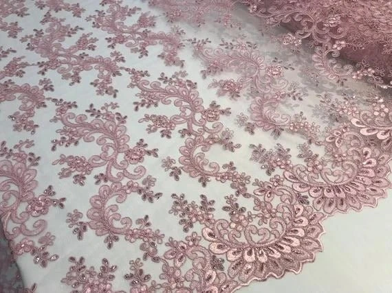 - This Floral Lace Fabric has handsome scallop edges that have exceptionally finished on both sides of the fabric.