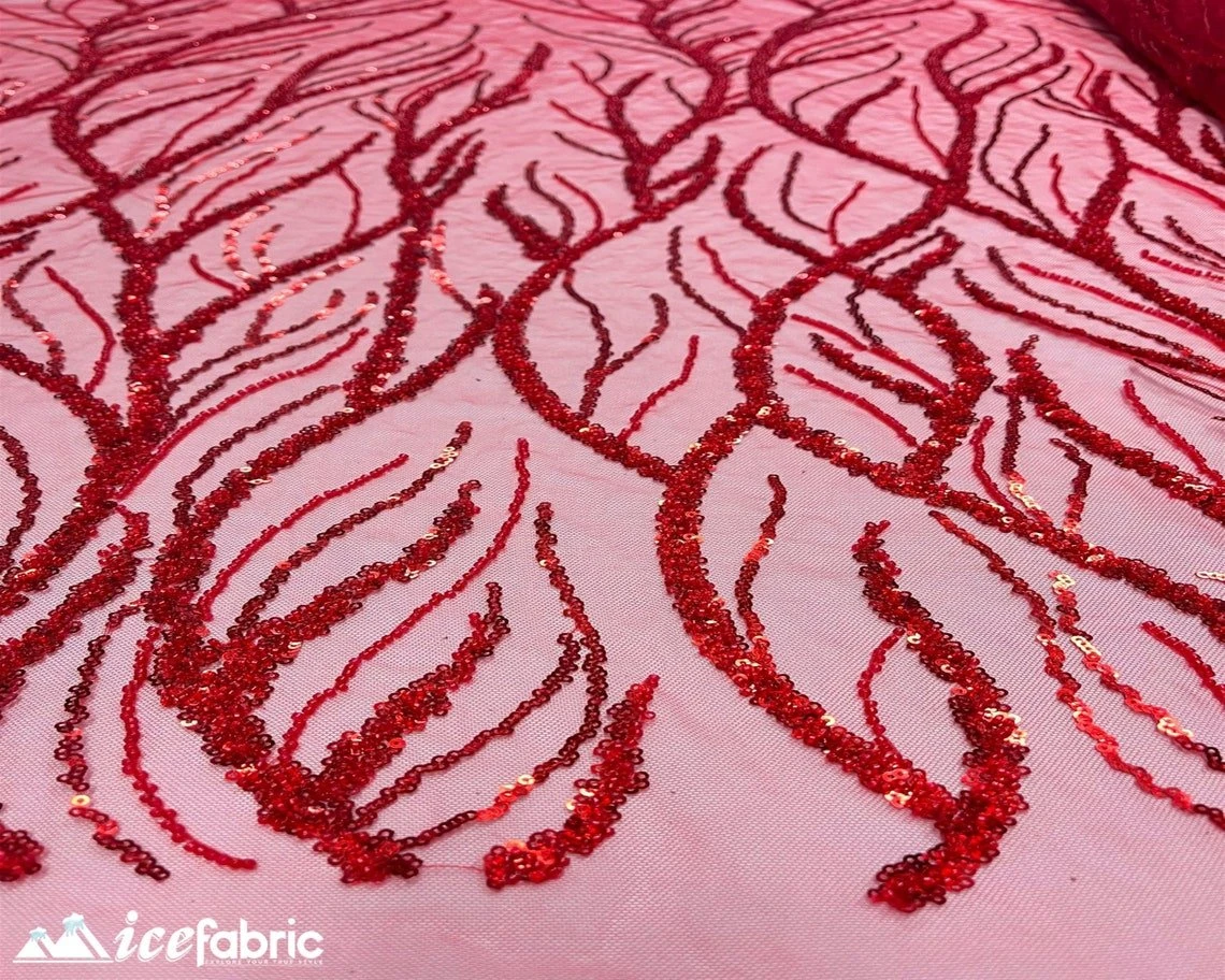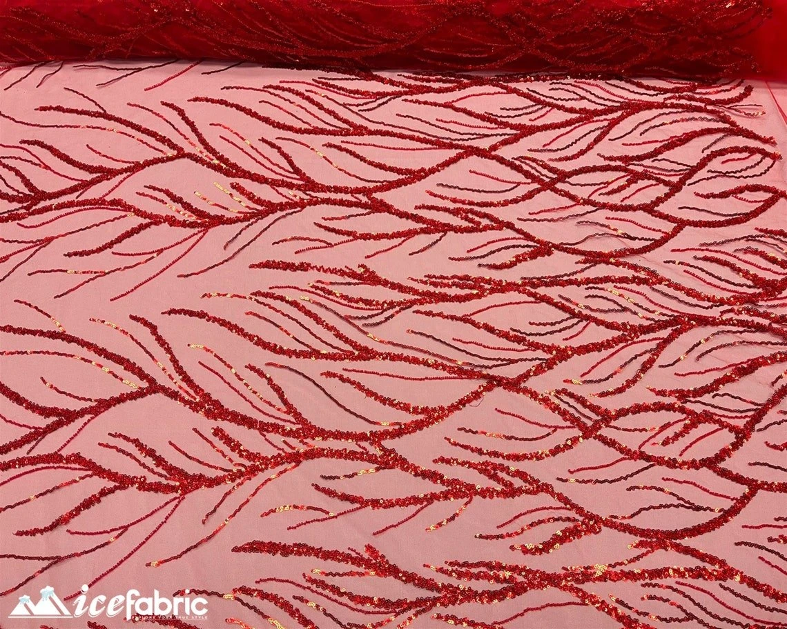 Red Handmade Heavy Beaded Fabric By The Yard | 52’’ Wide | Handmade Sequin Beaded Embroidery Lace Fabric