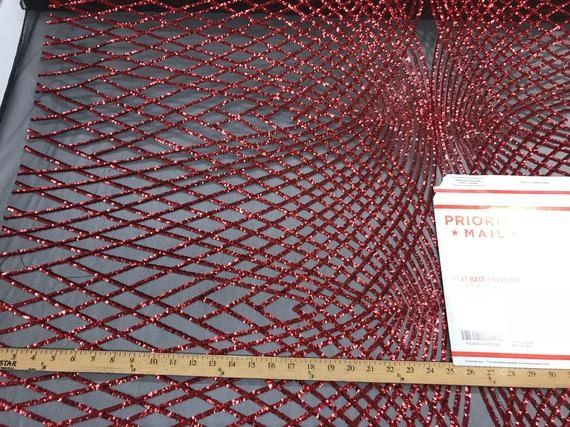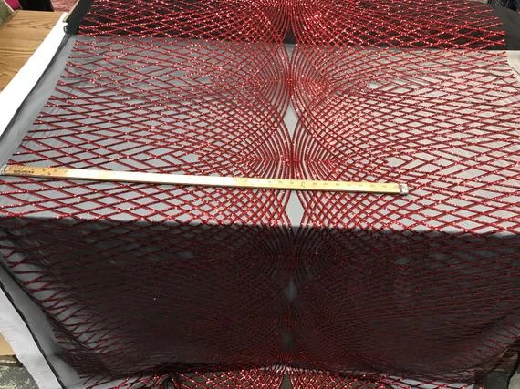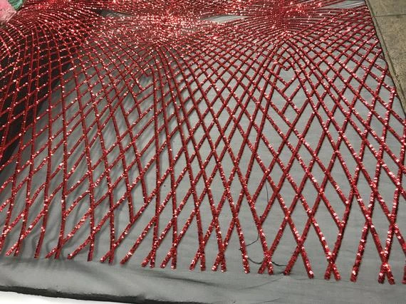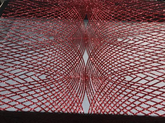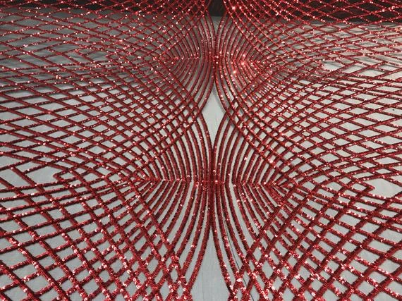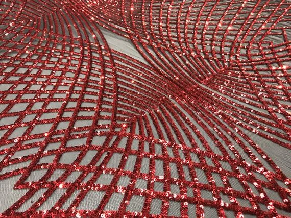 ICE Fabrics offers “Luxury Design Red Embroidered 4 Way Stretch Sequin Fabric Sold by the Yard For Wedding Prom Dresses Tablecloths Night Gowns” in unique size and color.