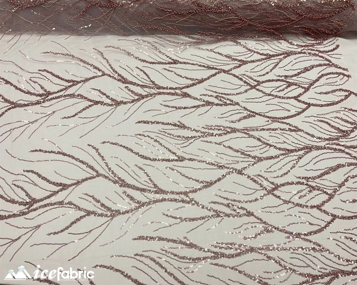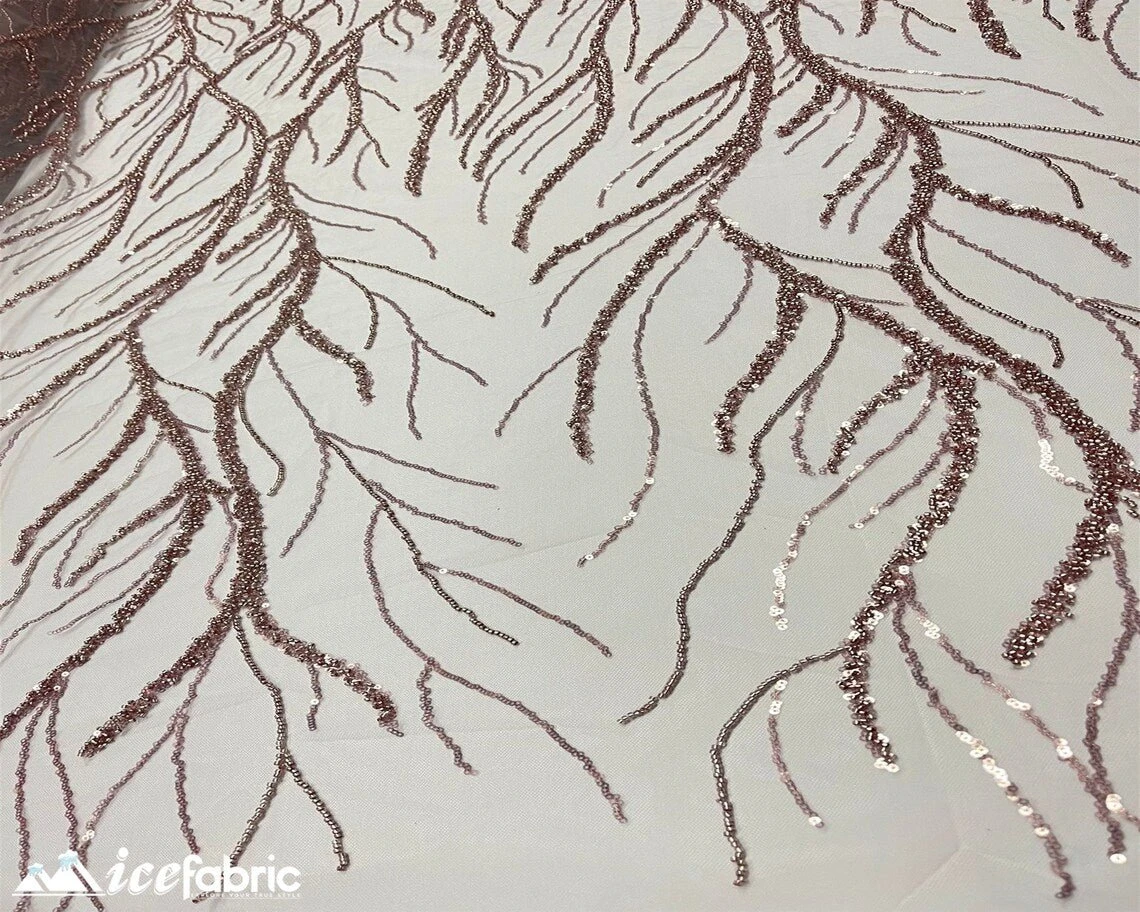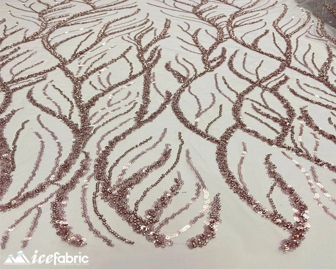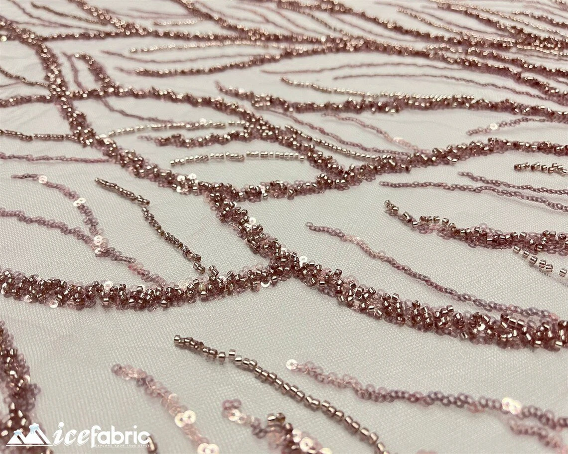Rose Gold Handmade Heavy Beaded Fabric By The Yard | 52’’ Wide | Handmade Sequin Beaded Embroidery Lace Fabric