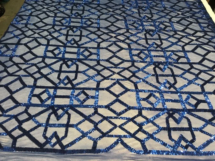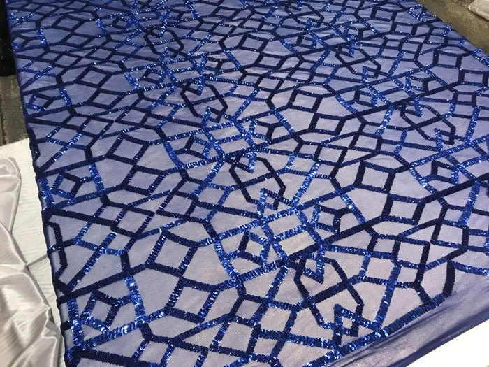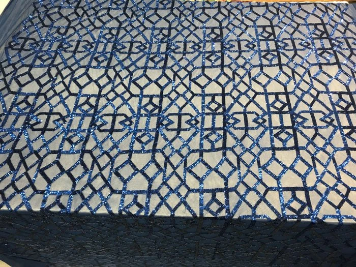 ICE Fabrics offers “New Royal Blue Elegant Designed Embroidery 4 Way Stretch Sequin Fabric Sold by the Yard for Wedding Prom Dresses” in unique size and color.