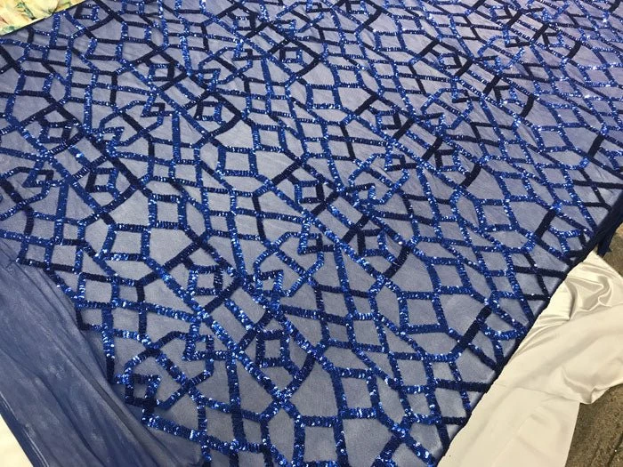 Get a standard of perfection with this Royal Blue Sequin 4 Way Stretch Fabric that has a dazzling Shimmer and shine! This polyester netting features thousands of sewn-on matte sequins throughout the structure.