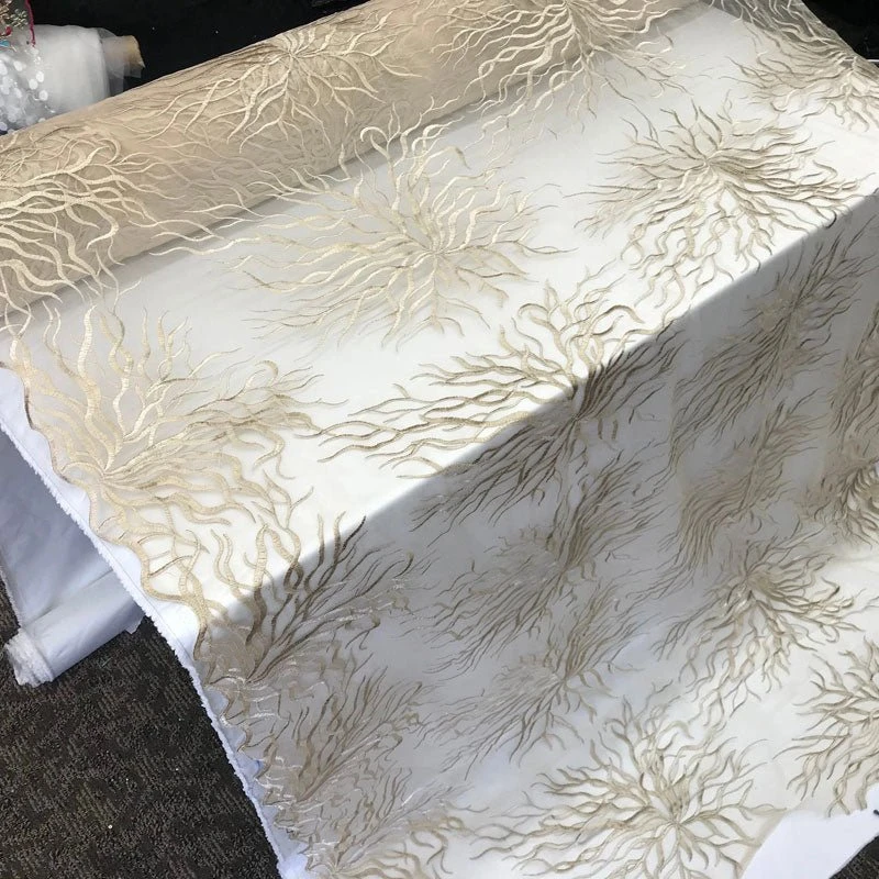 Our mesh floral lace the dress captures the attention of guests. Our lace that is useful for white gown because white gowns are still the standard choice for modern brides and remain a crucial part of making a wedding special.