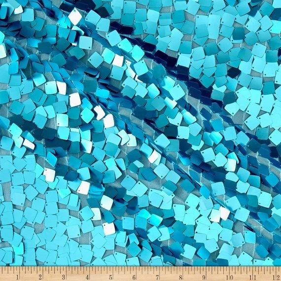 ICE Fabrics offers “Square Dazzle Stretch Sequin Fabric Sold by the Yard for Decoration Runners Tablecloth” in unique size and variant colors.