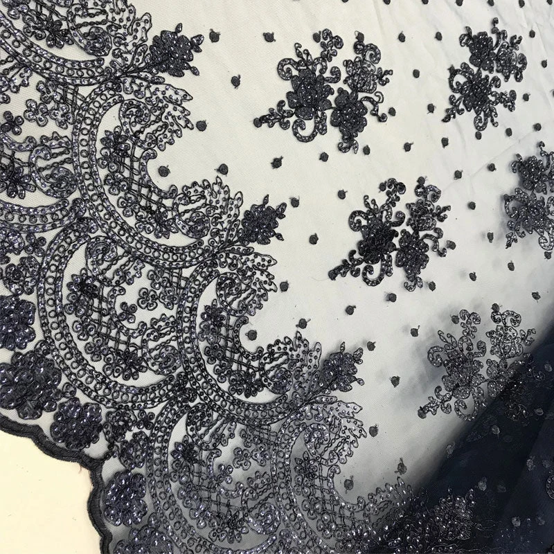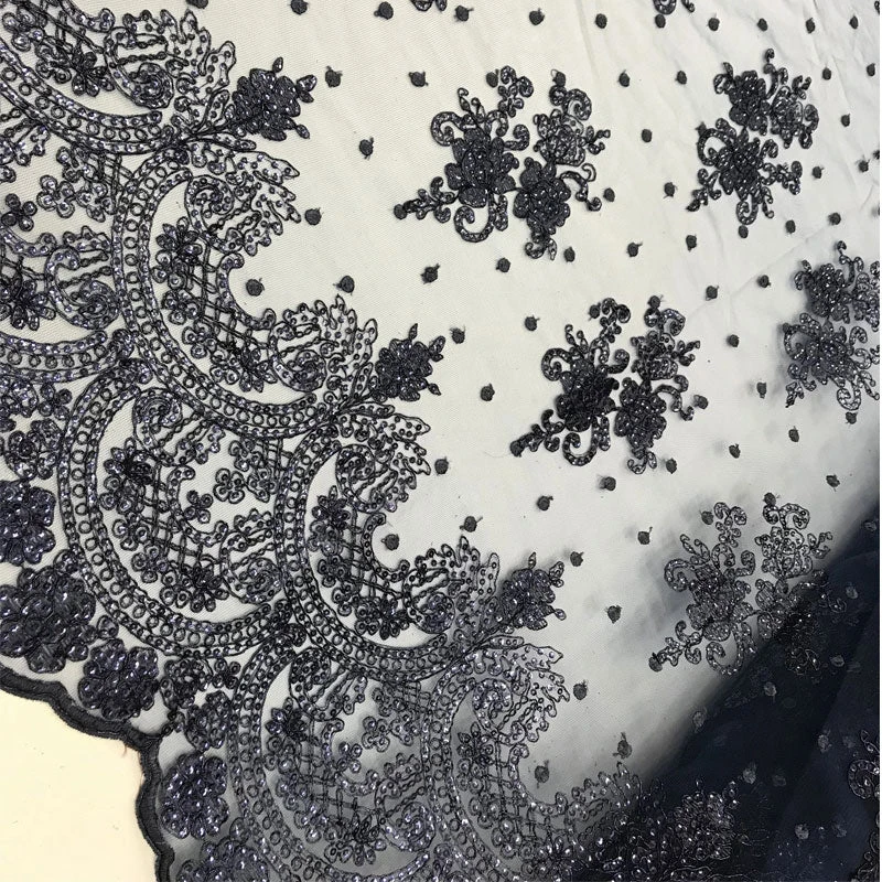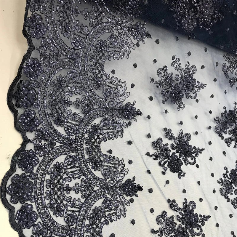 - This Floral Lace Fabric has handsome scallop edges that are exceptionally finished on both sides of the fabric.