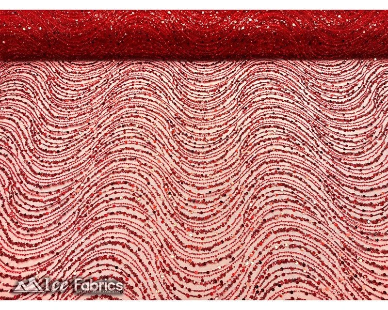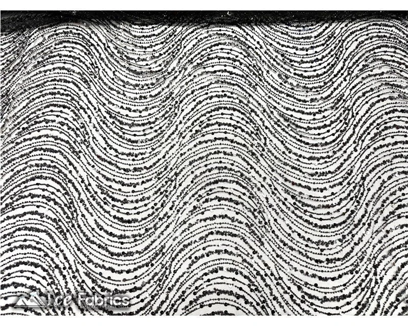 IceFabrics offers “Wavy Beaded Sequin Embroidery On Mesh Fabric” in unique size and variant colors.