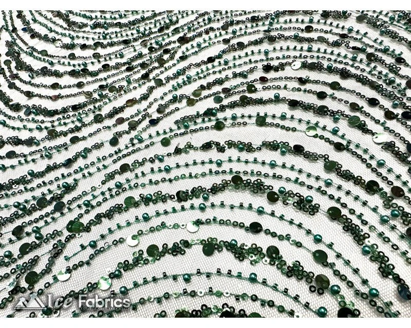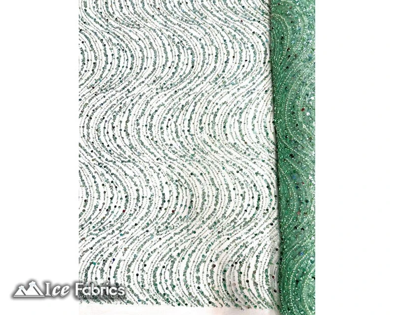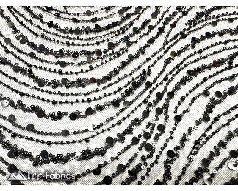 Wavy Beaded Sequin Embroidery on Mesh Fabric
