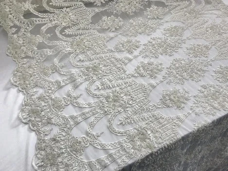 Key Features “Bridal Floral Embroidered Beaded Mesh Lace Fabric”