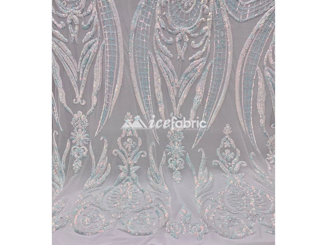 IceFabrics offers a 4 Way Geometric Embroidery Sequin Fabric by the yard in unique size and variant colors.